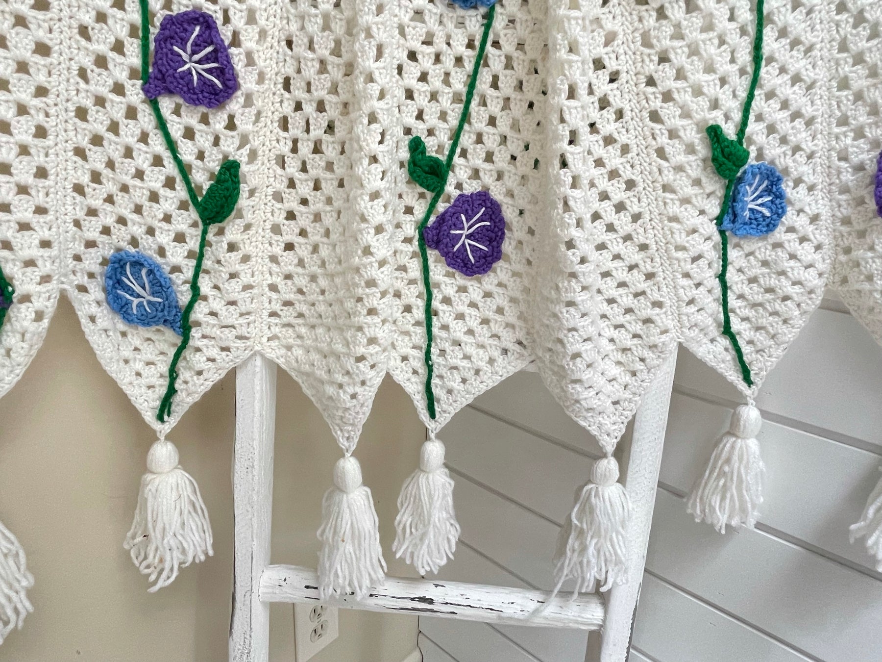 This beautifully crafted Morning Glory Afghan is a completed, ready-to-ship piece, created as the original design model used for pattern photography. It has never been used and is in excellent, like-new condition.