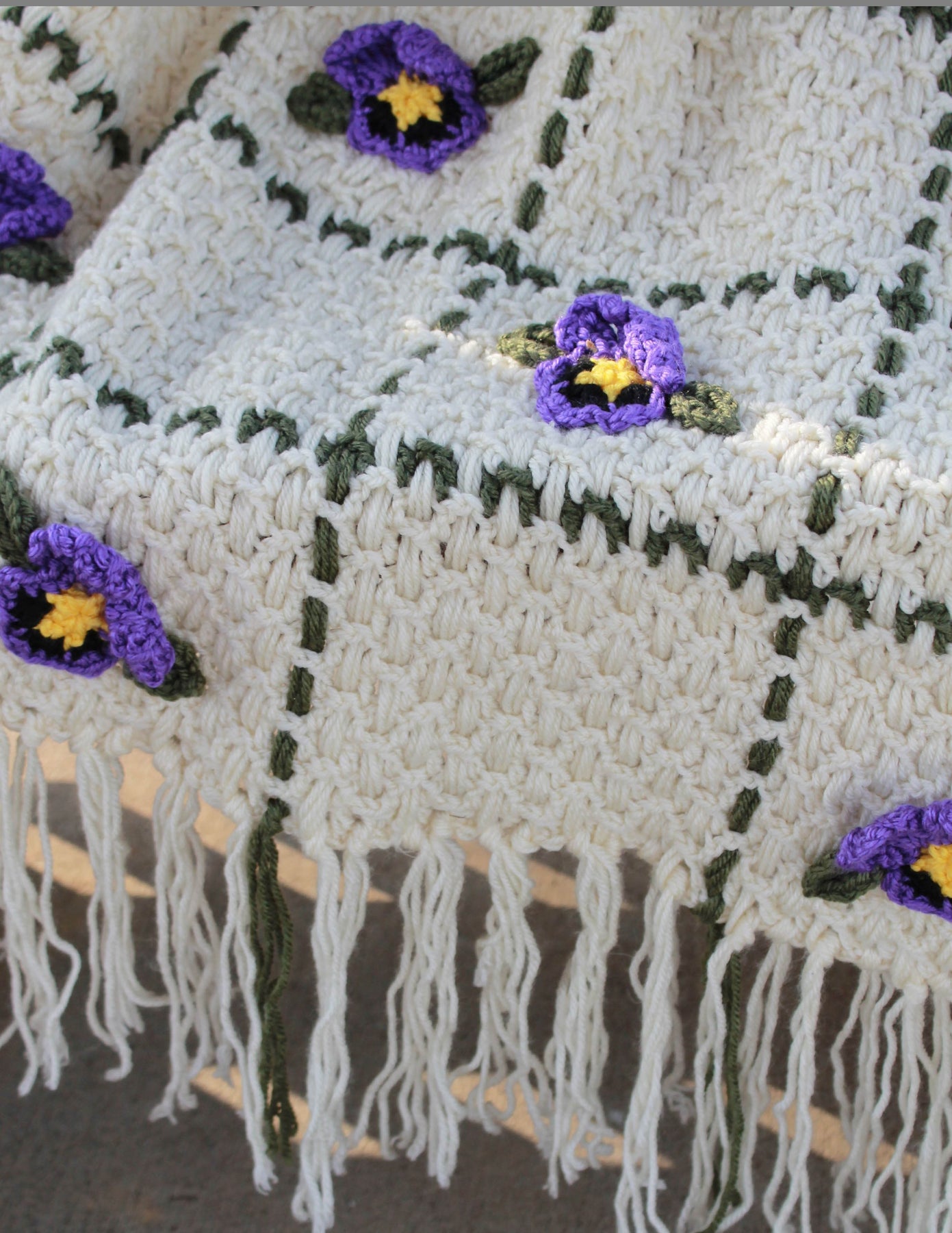 Finished Pansy Weave Afghan – One-of-a-Kind, Only One Available
