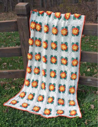 Gather together your worsted weight golds and greens to crochet a masterpiece certain to delight everyone who enters your home and most of all, you!